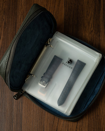 The Strap Folio (Small) can accommodate a total of six Strap Packaging Insert (2), and each insert can store a total of 2 straps, for a total storage capacity of 12 straps. The small folio is perfect if you have a small collection of straps to store, or are looking for a way to carry a few straps for a get-together with your watch pals. Alternatively, have one Strap Folio for each watch that you own, and whenever you are travelling with that watch, just grab the Small Folio and go!