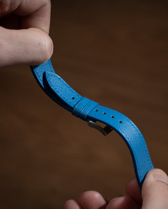 The denim chèvre was a first purchase from Delugs and the entire process (from the search, the enormous range of options, webpage format with multiple quality images to represent straps on various models, speed of delivery, the top quality of product, and follow-up service) assure many future purchases. Thank you:)
