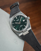 Looking to elevate the look and feel of your Tissot PRX? Our Tissot PRX straps are now available, with quick release spring bars fitted within the metal end links. You can easily switch between the bracelet and our straps. Made to fit either the Quartz or Automatic variants in 40mm.