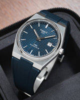 The PRX CTS Rubber is customisable to fit your wrist size perfectly, and is secured with a sleek leaf-spring deployant clasp. it is available in a range of colours to pair with the different PRX dial colours. This strap is not only comfortable and durable, it is also truly waterproof and easy to maintain.