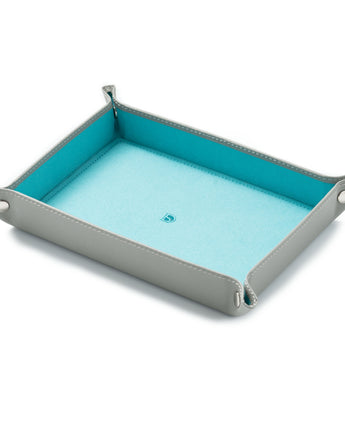 Our valet tray is made with Saffiano leather on the exterior for scratch-resistance, and Alcantara on the inside for a soft, luxurious feel. The middle is padded with sponge material for a plush cushion, while the sides are padded with a stiffener to give structure to the panels.