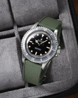 If you're searching for a Delugs strap to use with a vintage watch, be sure to check in with our Customer Service. Vintage watches sometimes use odd widths (17.5mm) or have shallow spring bar plots. This can increase the likelihood of slippage, even with the correct strap installed. Our trained staff will advise on the best course of action for a perfect fit.