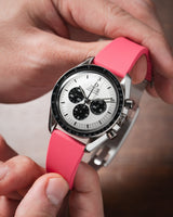 Introducing another new peak in comfort and style: our FKM Rubber Cut-To-Size ("CTS") rubber watch strap. Customisable to fit your wrist perfectly and secured with a sleek leaf-spring deployant clasp, it is also available in a range of colours to suit your personal style. This strap is not only comfortable and durable, it is also truly waterproof and easy to maintain. Whether you're hitting the gym, or dressing up for a night out, this strap has you covered.