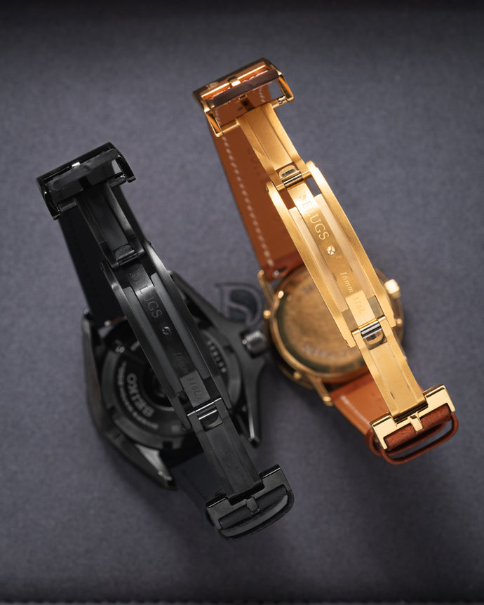 At Delugs, we believe great straps deserve equally great hardware. From quick release spring bars to clasps, every piece is sturdy and easy to use. Whether you decide to pick up a leather or rubber or fabric strap, you’ll find hardware that feels refined, secure and perfectly at home on your wrist.