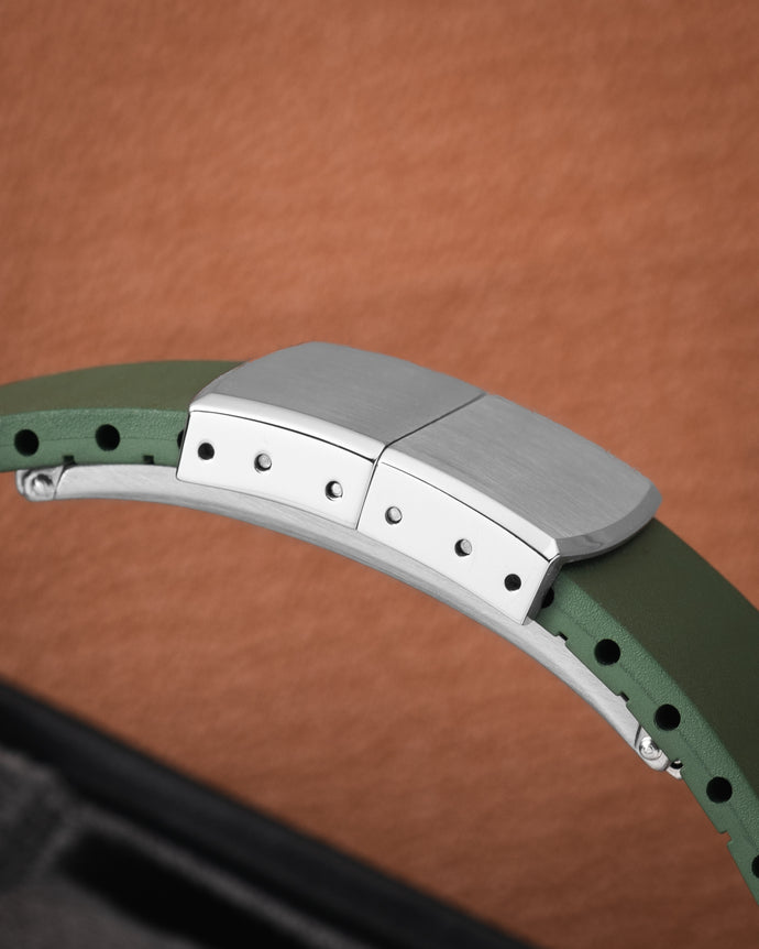 Our CTS Deployant Clasps are designed for exclusive use with our Rubber CTS Straps. There are 2 positions on each side of the clasp for micro-adjustment. This allows you to get the perfect fit, and have some room to adjust should your wrist size change over time.