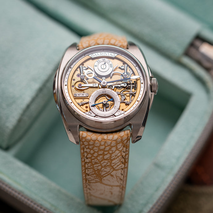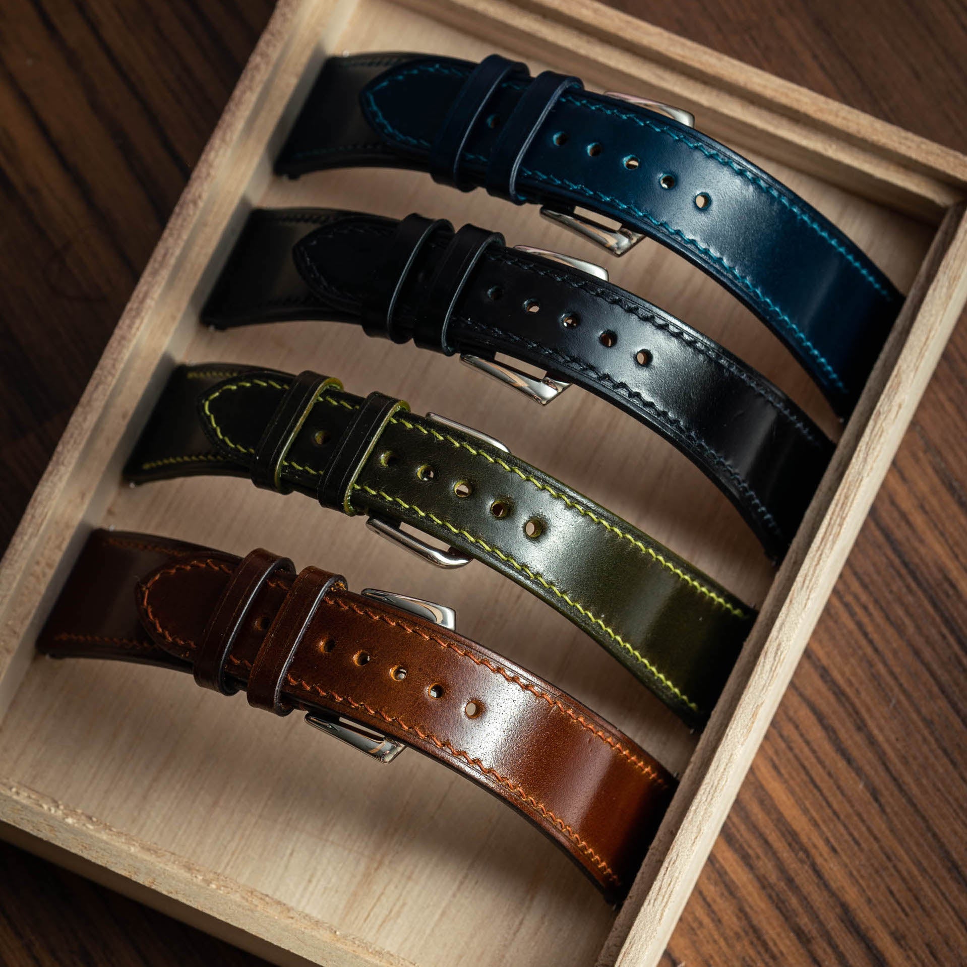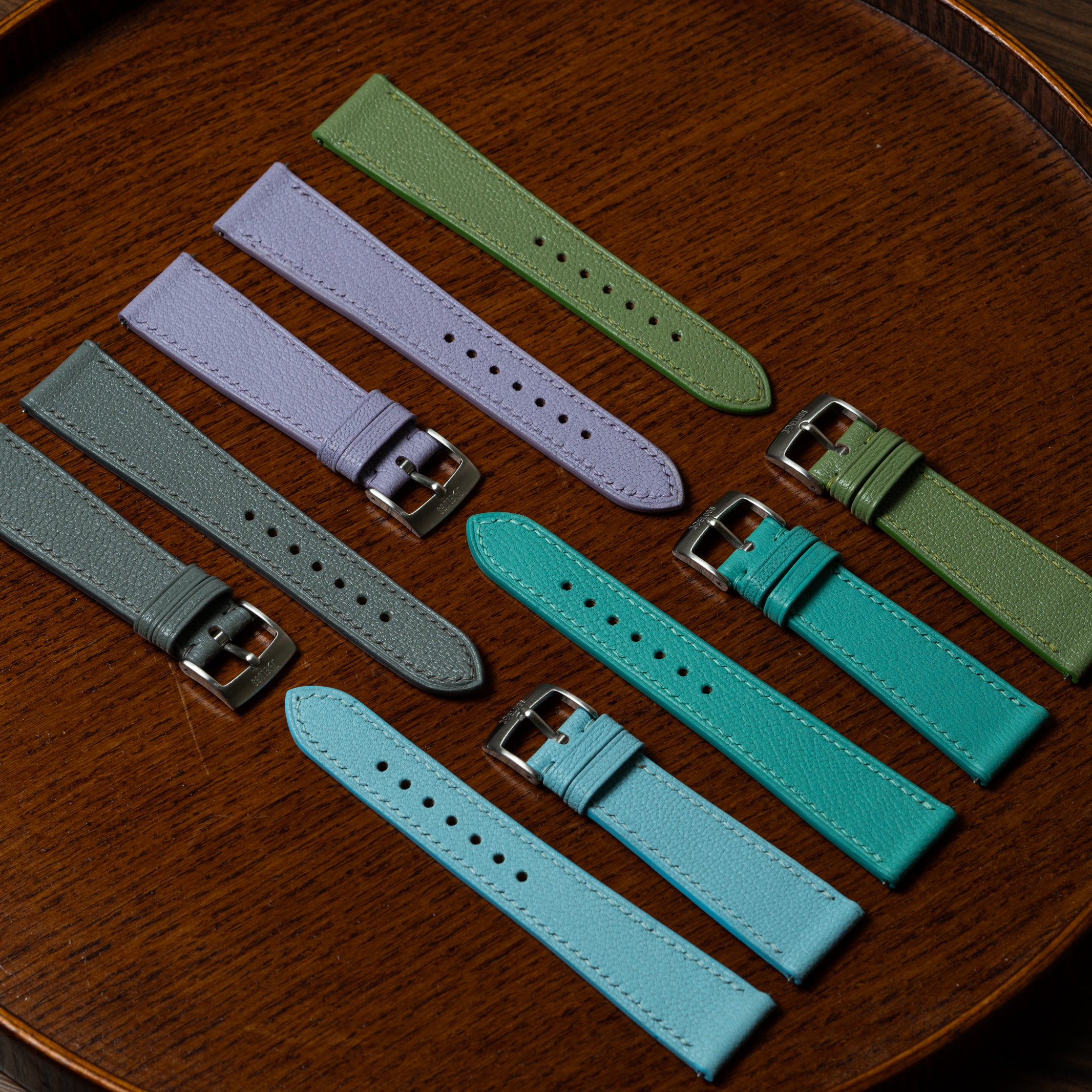 Shell is particularly at home as a watch strap, one of its signature properties being that it tends to ripple rather than crease. Shinki Hikaku's version of the leather is also extremely clean and uniform, and can show off cool tones and depth of colour.