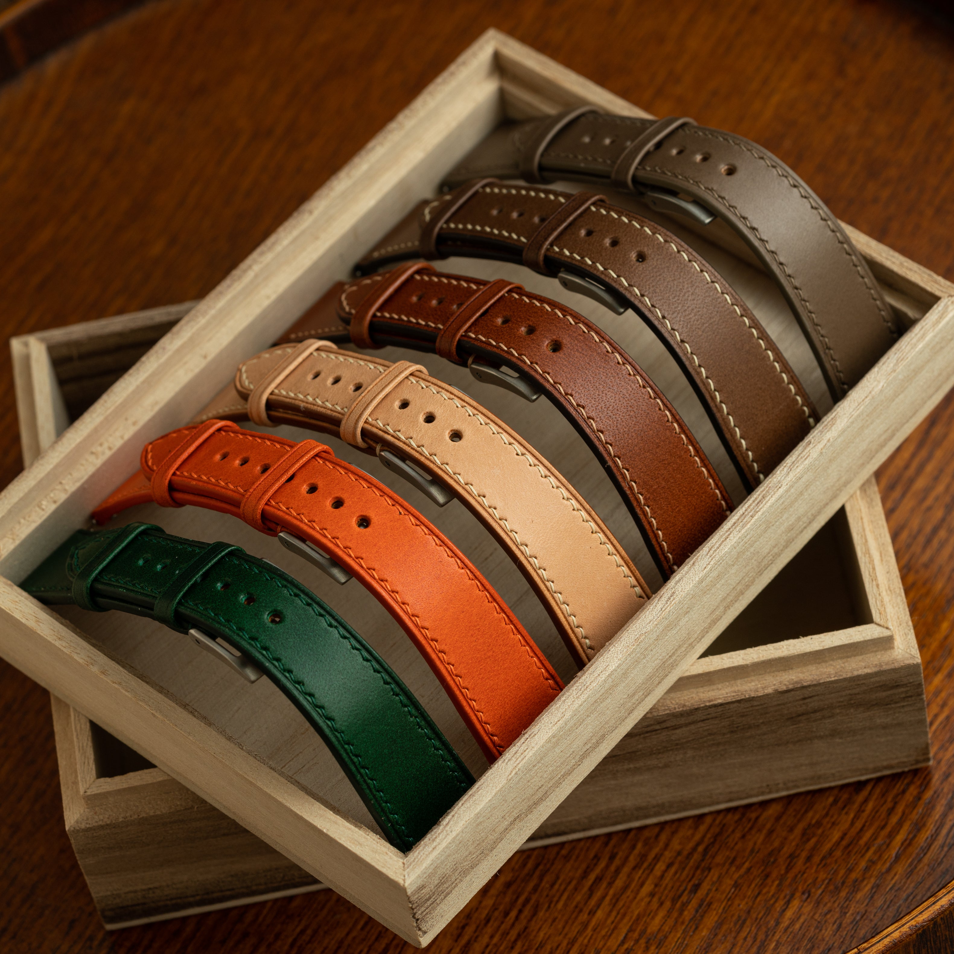 Buttero leather, the king of patina, is arguably their most famous article. It picks up marks and scratches which quickly blend gracefully into the subsurface. Produced with an aniline finish which shows off the hide's natural surface as opposed to a smooth pigmented topcoat, the leather comes in crisp and vibrant colours as well as traditional shades. With time and wear, your strap will develop a natural sheen and deeper hues. All of this built on a base of firm temper full-grain shoulders - built to last.
