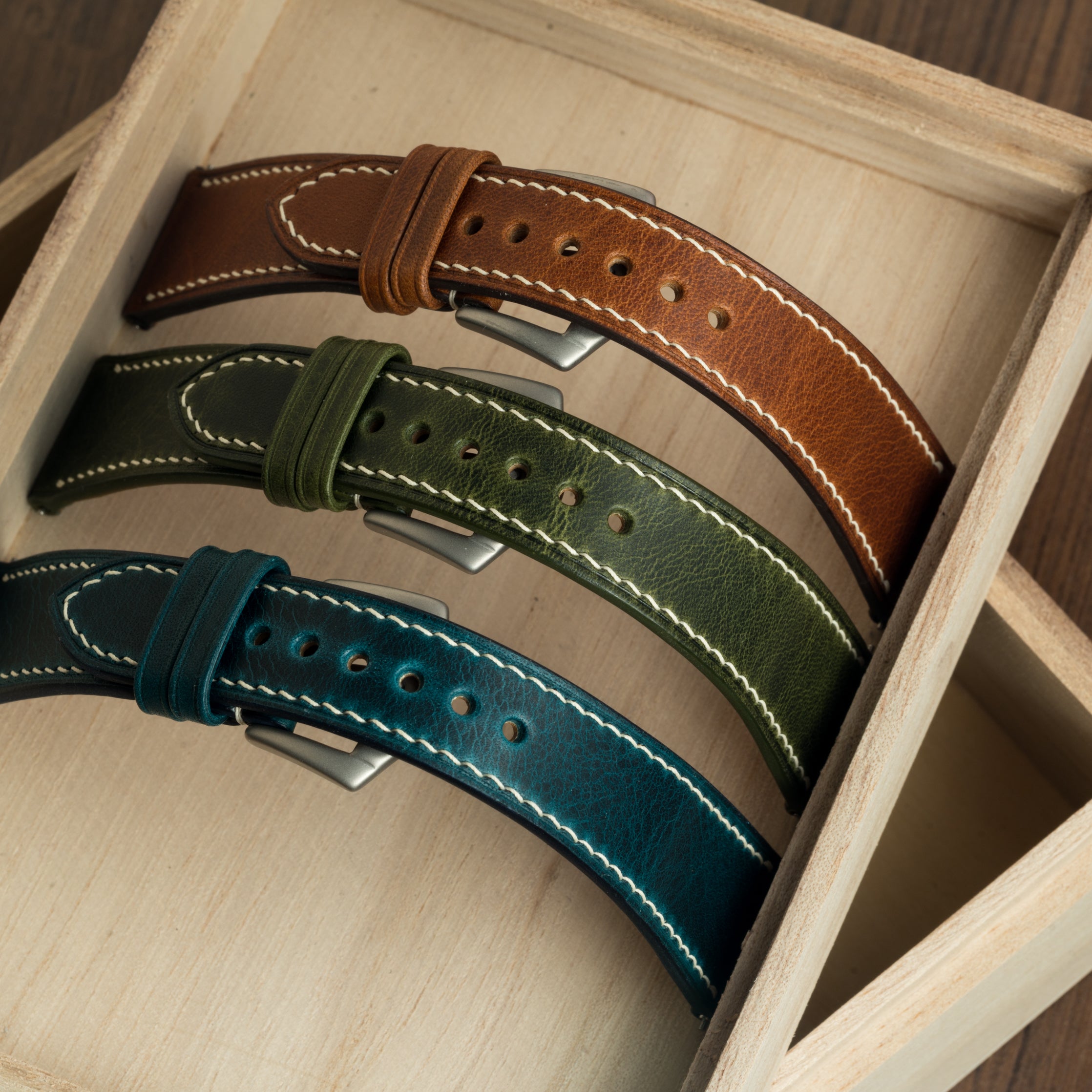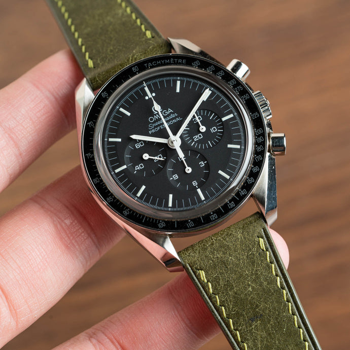Hands down, Crazy Horse leather lives up to its name. Evoking images of cowboys, saddlery, and the Wild West, this leather is what you get when you mix Nubuck and Pueblo into one. Velvety soft and yet able to take a beating, these straps will develop a patina with rugged charm. Colour variations give it a visual texture which is only improved with time and use as it flexes, shifts, and collects the marks of your daily adventures.