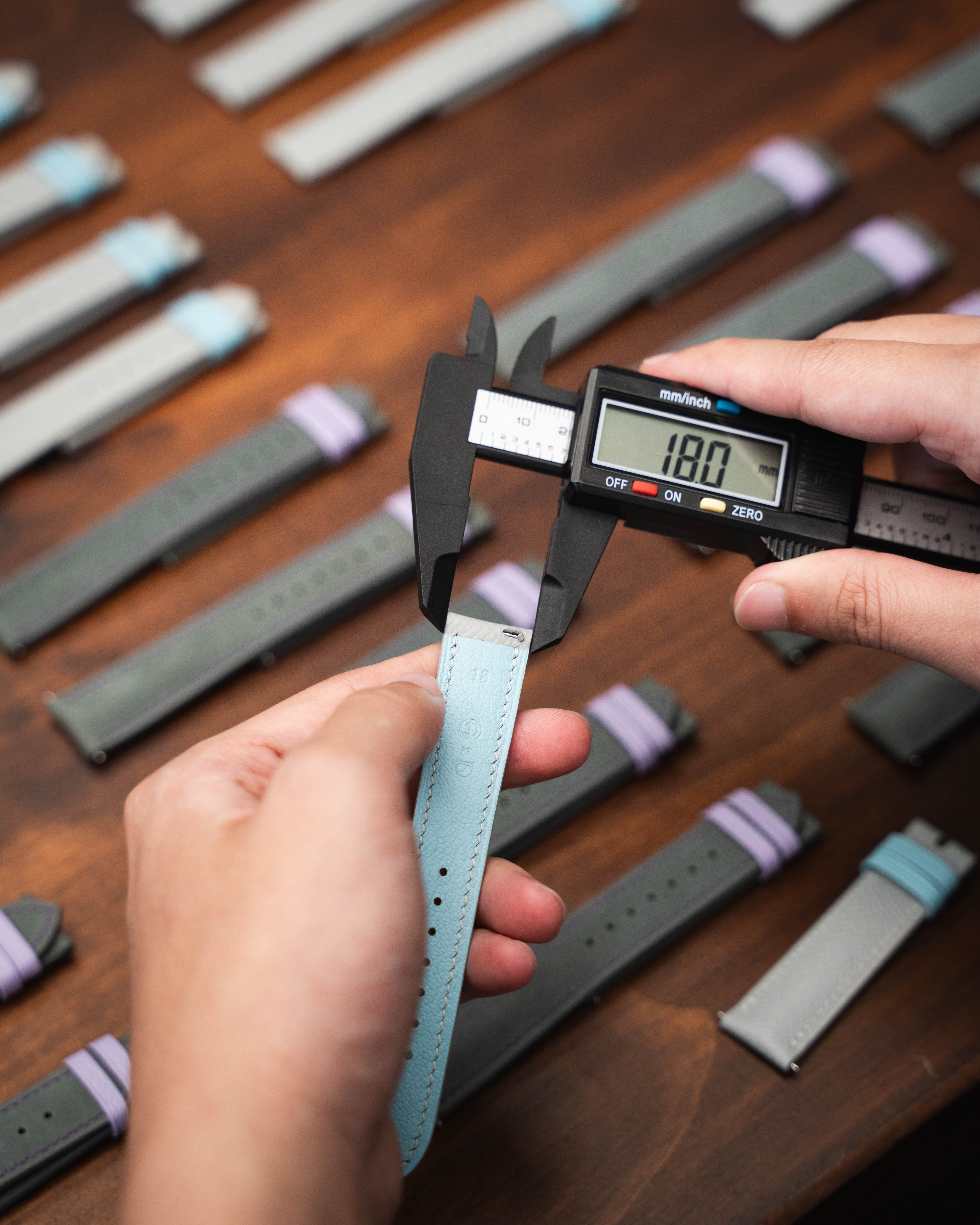 Strap is checked to ensure that there are no flaws, marks, or defects, and that the measurements are precise and accurate.