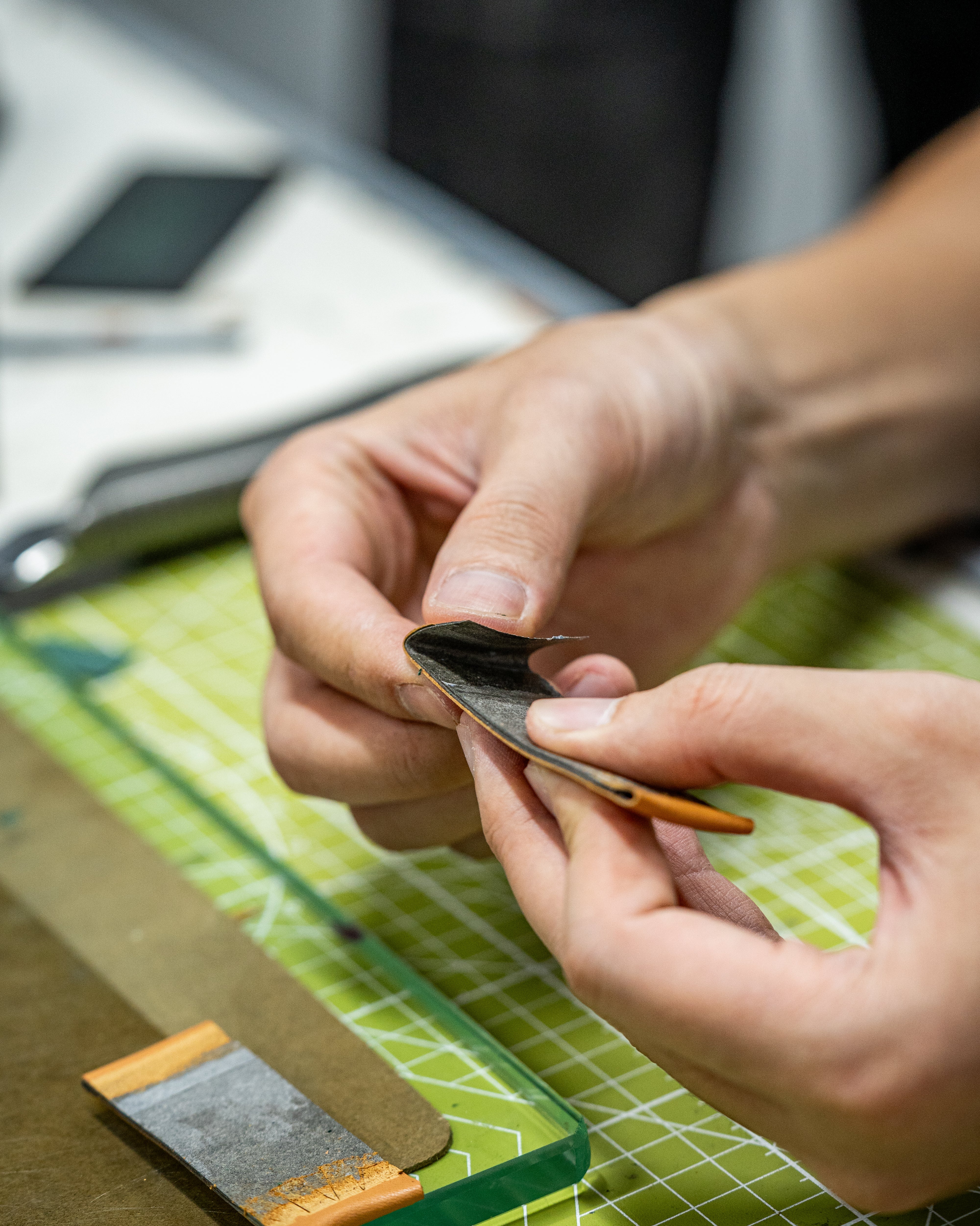 Everything starts with the leather, which we source from tanneries around the world.