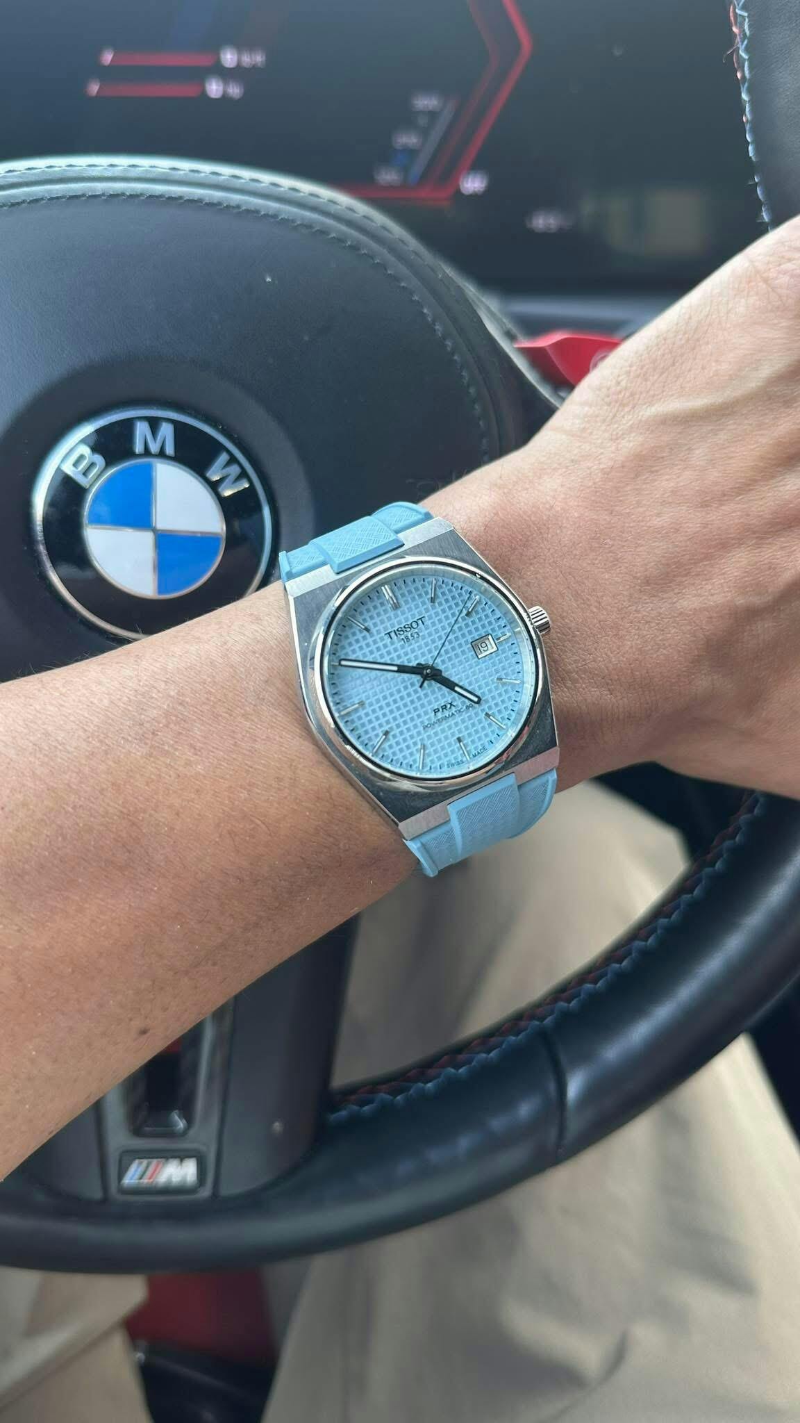 This one won me over from the first wear. The rubber feels soft yet secure and it is just great! The fit is exact and sits flush with the case. No digging. The swap took a few minutes with standard spring bars and the strap locked in perfectly. By the way, the magnetic clasp system: BRILLIANT! The navy color suits the watch’s look and, because it doesn’t have texture, it helps the beautiful white dial texture pop.