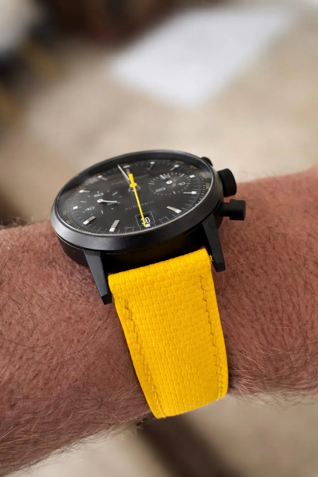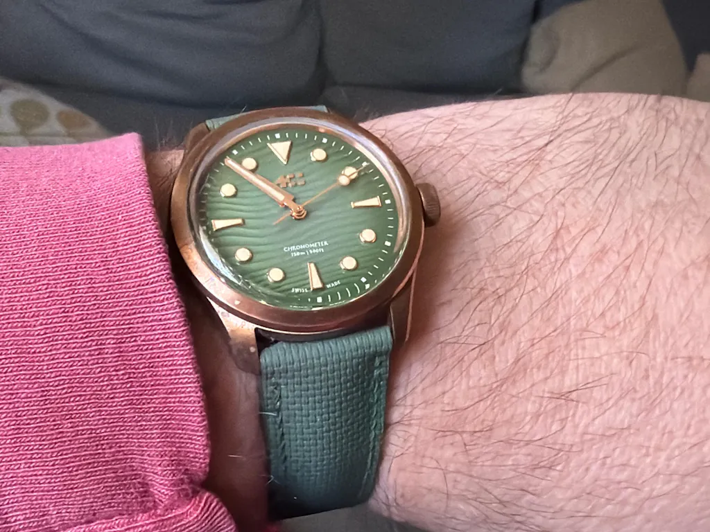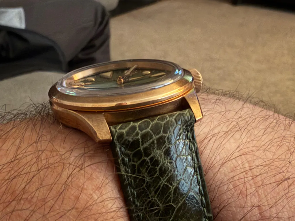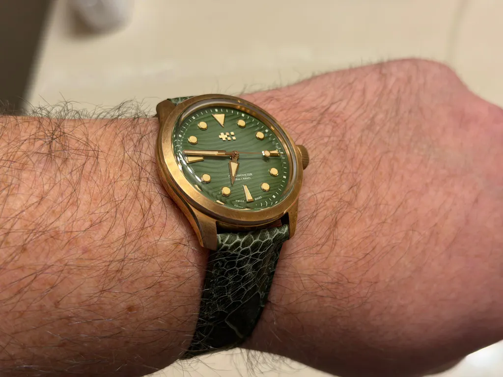 The ostrich leg is simply exquisite, and it green, it’s even better. The deployant is easy to use, does the job, and the action feels smooth and predictable. This was my first from Delugs, and I’ve since purchased a “sailcloth” that is of an equally superior quality. There will be more Delugs in my future, without question.