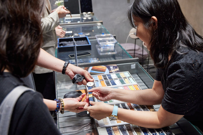 Designed exclusively for watch enthusiasts, this bespoke experience will take you on a journey from consultation to craftsmanship, where each strap is tailored to reflect your unique style. Engage directly with our expert Stylists and Leathercrafters who will guide you through a curated selection of premium materials and design options, ensuring your vision comes to life.