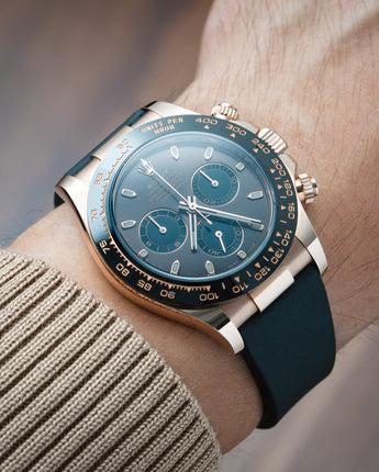 Introducing another new peak in comfort and style: our FKM Rubber Cut-To-Size ("CTS") rubber watch strap. Customisable to fit your wrist perfectly and secured with a sleek leaf-spring deployant clasp, it is also available in a range of colours to suit your personal style. This strap is not only comfortable and durable, it is also truly waterproof and easy to maintain. Whether you're hitting the gym, or dressing up for a night out, this strap has you covered.