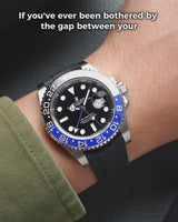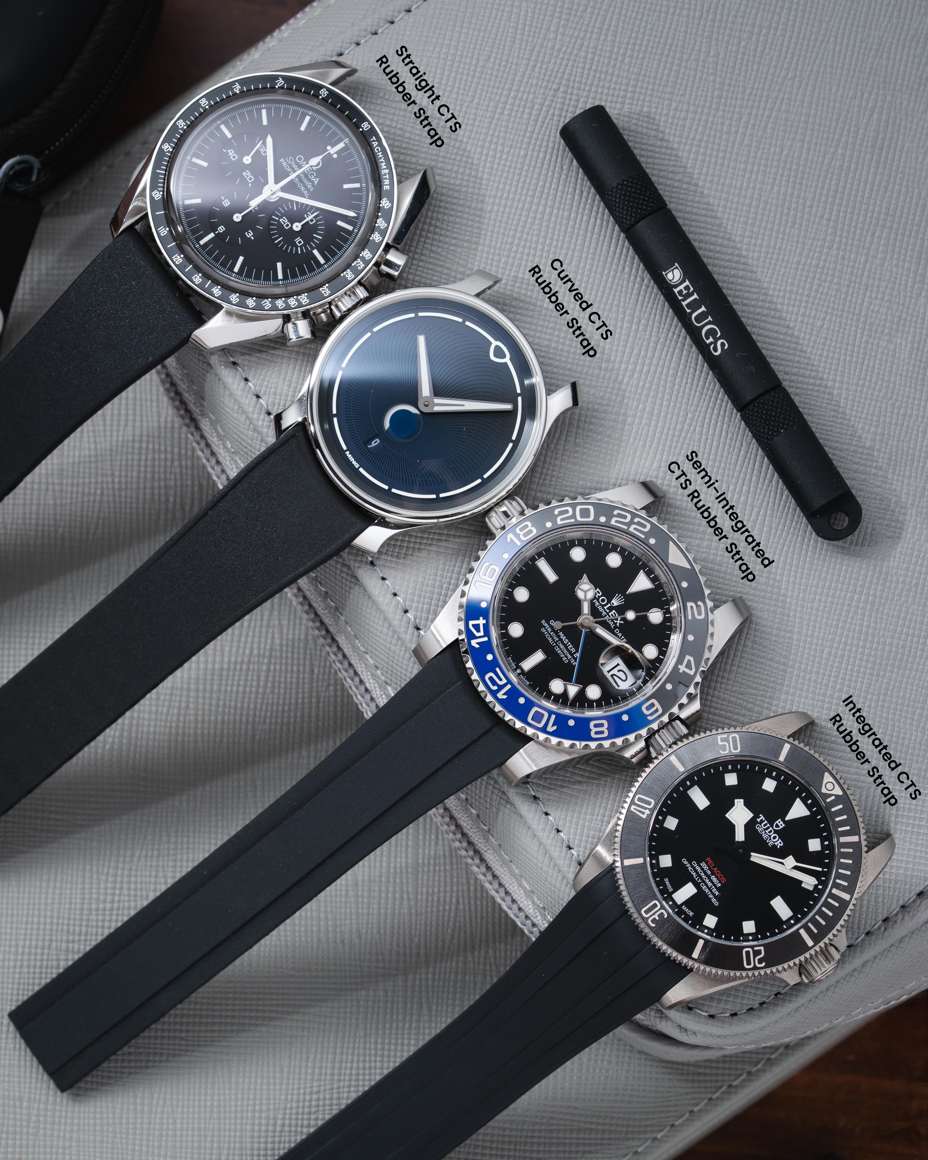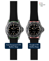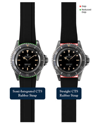 The Semi-Integrated CTS Rubber Strap is designed for those who want a more integrated look. Sitting between our fully integrated and curved straps, it features a higher-volume curved lug end that visually reduces the strap gap while maintaining broad compatibility with most modern watches.