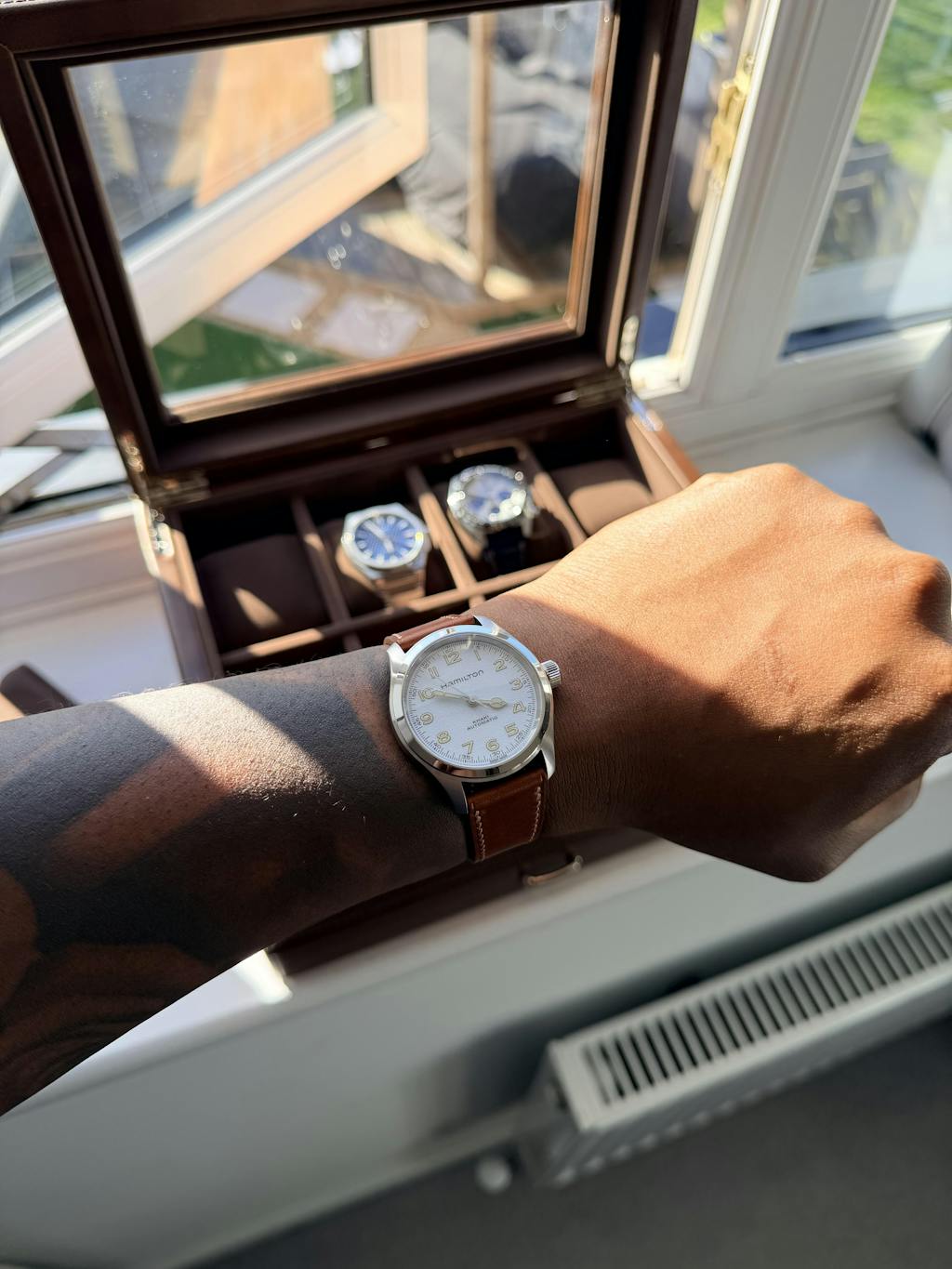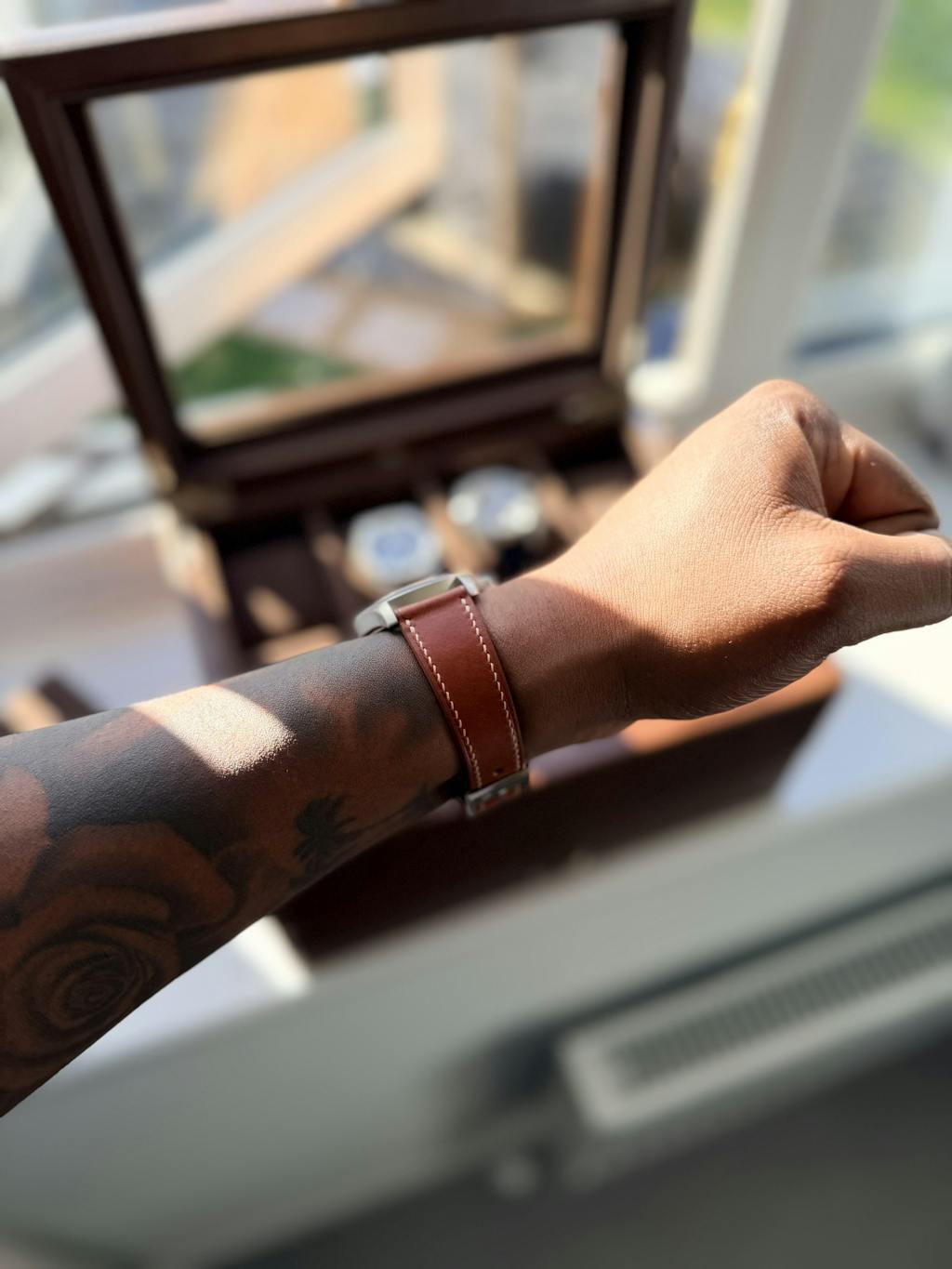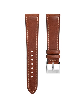 This strap will patina over time, and hence the surface texture and colour of the strap will change with use. Patina is a soft glow on the leather that develops through friction and wear. Patina is often said to enhance a product (it gets better with age) as the leather product develops a character that is an amalgamation of all the conditions that it's exposed to.