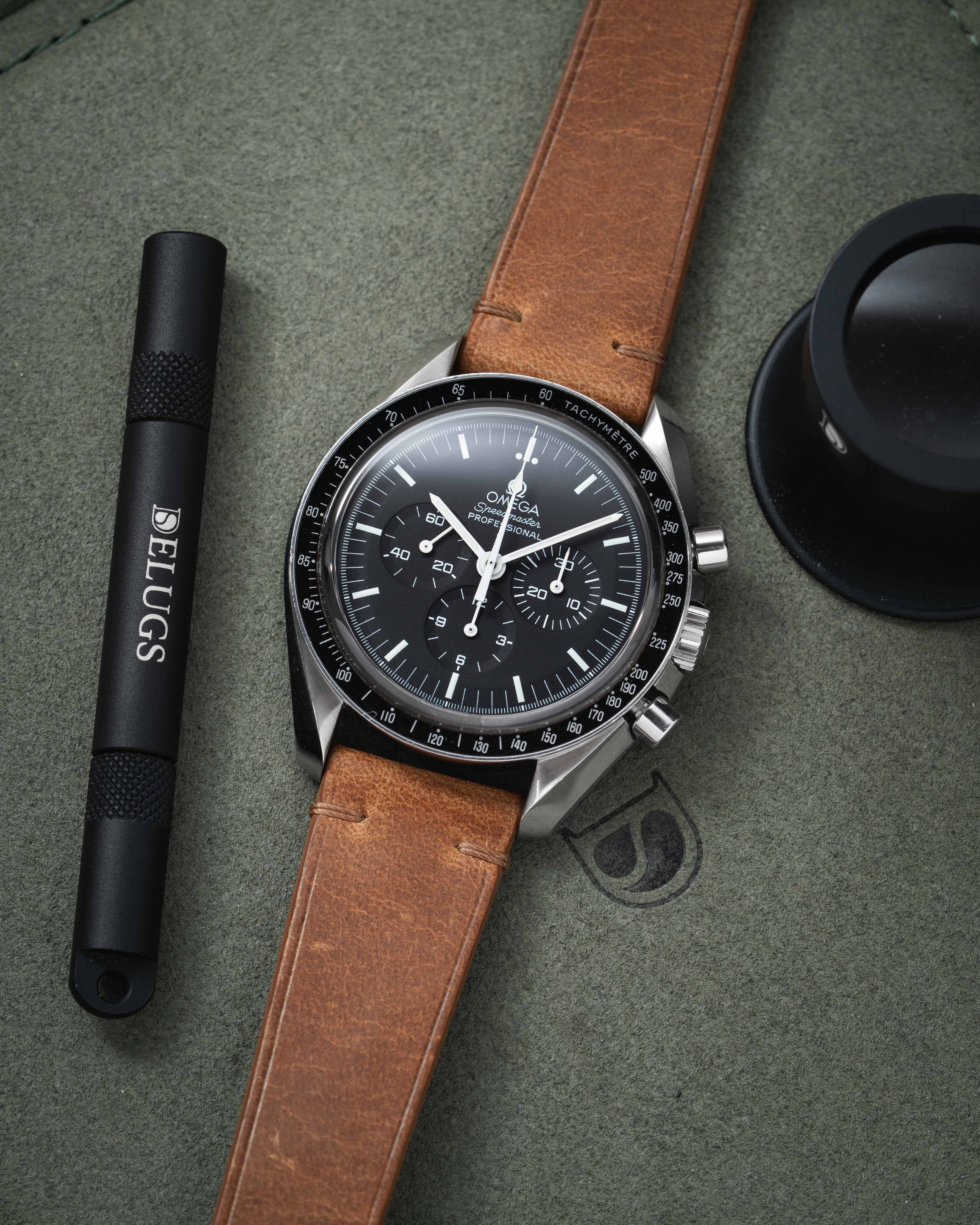 If you're searching for a Delugs strap to use with a vintage watch, be sure to check in with our Customer Service. Vintage watches sometimes use odd widths (17.5mm) or have shallow spring bar plots. This can increase the likelihood of slippage, even with the correct strap installed. Our trained staff will advise on the best course of action for a perfect fit.
