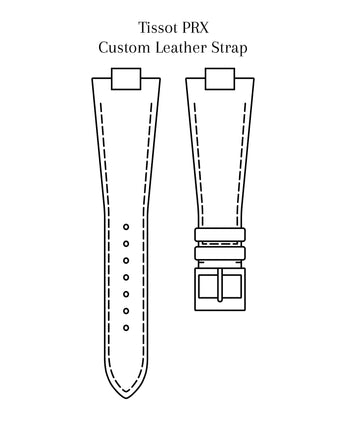Custom handcrafted leather watch straps for Tissot PRX by Delugs, using a wide variety of top quality leather used by leathercrafters all around the world. 100% handmade to perfectly fit your timepiece.
