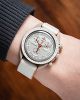 Very nice looking strap, easy to install and use. No complaints at the moment, really nice strap for the jupiter moonswatch