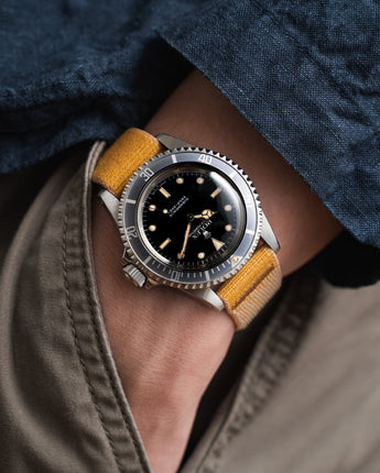 The new Delcro provides a “non strap feeling” sensation that I like a lot. 5 stars for comfort!! The color matches perfect with patina (natural or not) indexes and hands. My only concern is the longevity of the material specially the edges and surface because of continuous contact with the sharp edges of the submariner case while wearing and taking off the strap. New colors in my box soon!!
