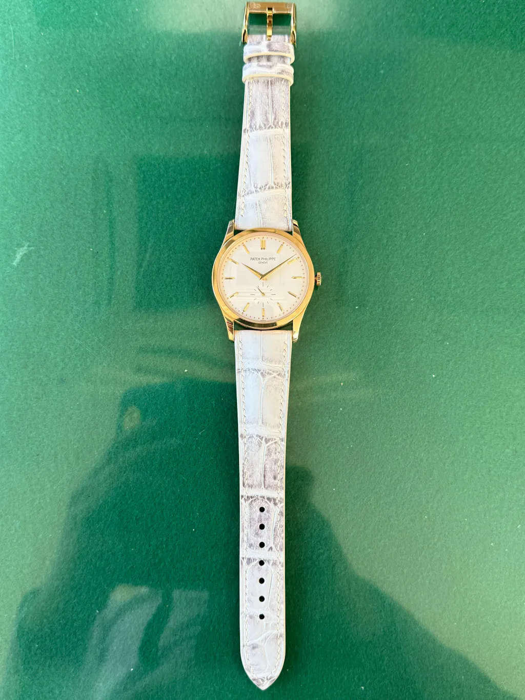 The buckle has a mix of polished and brushed surfaces.