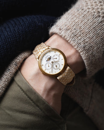 Our Salmon leather straps are crafted with folded edges by default to prevent scales from lifting, but some lifting may still happen over time.