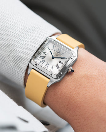 If you're searching for a Delugs strap to use with a vintage watch, be sure to check in with our Customer Service. Vintage watches sometimes use odd widths (17.5mm) or have shallow spring bar plots. This can increase the likelihood of slippage, even with the correct strap installed. Our trained staff will advise on the best course of action for a perfect fit.