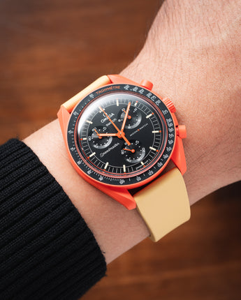 Introducing another new peak in comfort and style: our FKM Rubber Cut-To-Size ("CTS") rubber watch strap. Customisable to fit your wrist perfectly and secured with a sleek leaf-spring deployant clasp, it is also available in a range of colours to suit your personal style. This strap is not only comfortable and durable, it is also truly waterproof and easy to maintain. Whether you're hitting the gym, or dressing up for a night out, this strap has you covered.