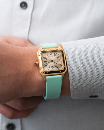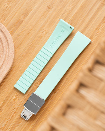 Introducing another new peak in comfort and style: our FKM Rubber Cut-To-Size ("CTS") rubber watch strap. Customisable to fit your wrist perfectly and secured with a sleek leaf-spring deployant clasp, it is also available in a range of colours to suit your personal style. This strap is not only comfortable and durable, it is also truly waterproof and easy to maintain. Whether you're hitting the gym, or dressing up for a night out, this strap has you covered.