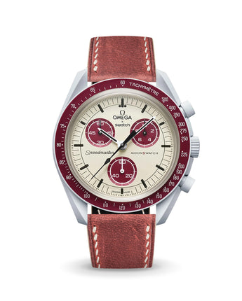 We've developed a total of 11 designs, curated to compliment each of the first 11 MoonSwatches, allowing the pairing to be seamless. These straps use the same leather and style from straps you love from Delugs, but with characteristics of two-tone accents in the stitching, edge paint and keepers.