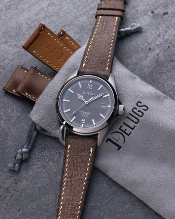 If you're searching for a Delugs strap to use with a vintage watch, be sure to check in with our Customer Service. Vintage watches sometimes use odd widths (17.5mm) or have shallow spring bar plots. This can increase the likelihood of slippage, even with the correct strap installed. Our trained staff will advise on the best course of action for a perfect fit.