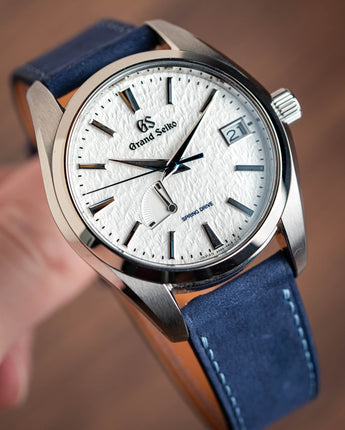 Nubuck has a soft touch with a short and even nap. It is supple and flexible from the start, but yet has just the right amount of structure. This strap is great if you are looking for something that's casual enough for all your daily activities, soft and comfortable to the touch, and an alternative to regular leather texture.