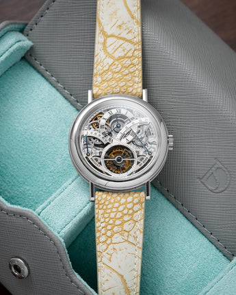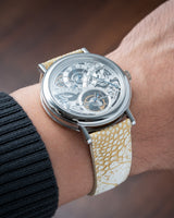 Ostrich Leg leather has beautiful texture, soft and supple, with little to no break-in time needed, and has a ton of colours available. It's the perfect alternative to Alligator if you're looking for another exotic strap.