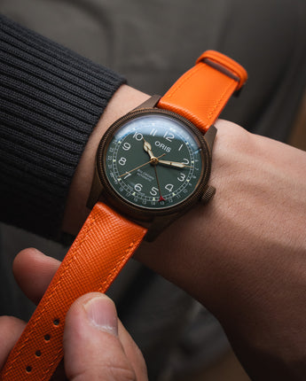 If you're searching for a Delugs strap to use with a vintage watch, be sure to check in with our Customer Service. Vintage watches sometimes use odd widths (17.5mm) or have shallow spring bar plots. This can increase the likelihood of slippage, even with the correct strap installed. Our trained staff will advise on the best course of action for a perfect fit.