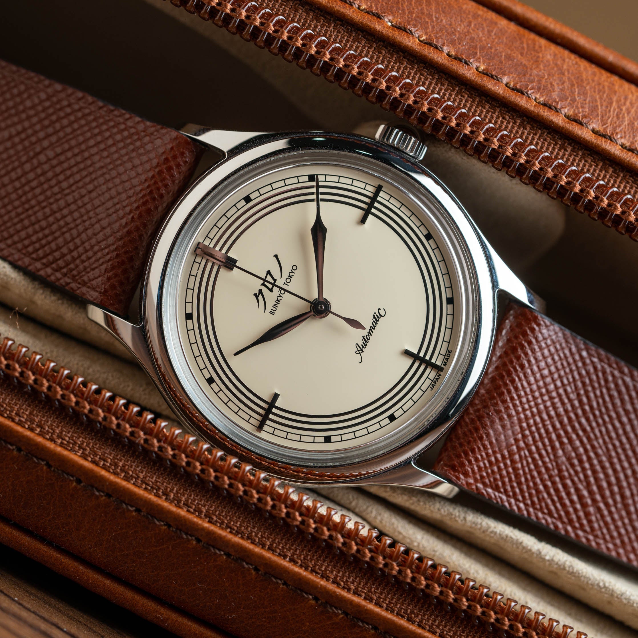 Saffiano leather is extremely popular amongst mainstream fashion. Even if you don't know its name, you probably have seen it before. It's an embossed pattern that has very pronounced and uniform grain. The scratch and water resistance of Saffiano is amongst the best there is. Paired in our Stitchless style, this is the casual strap you can keep on your wrist all year long.