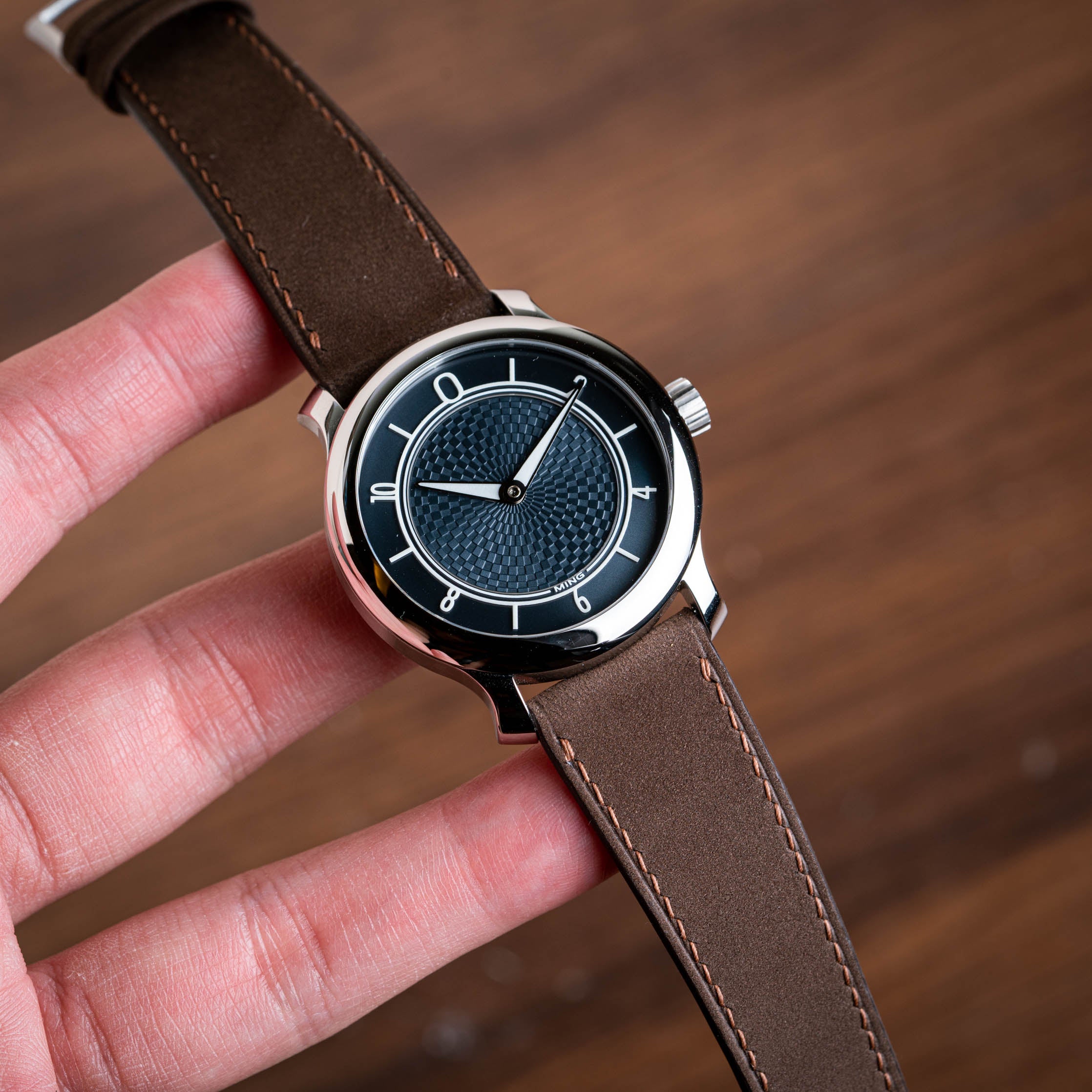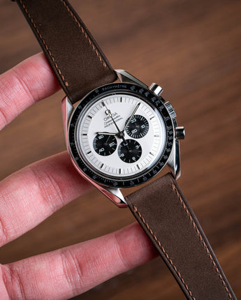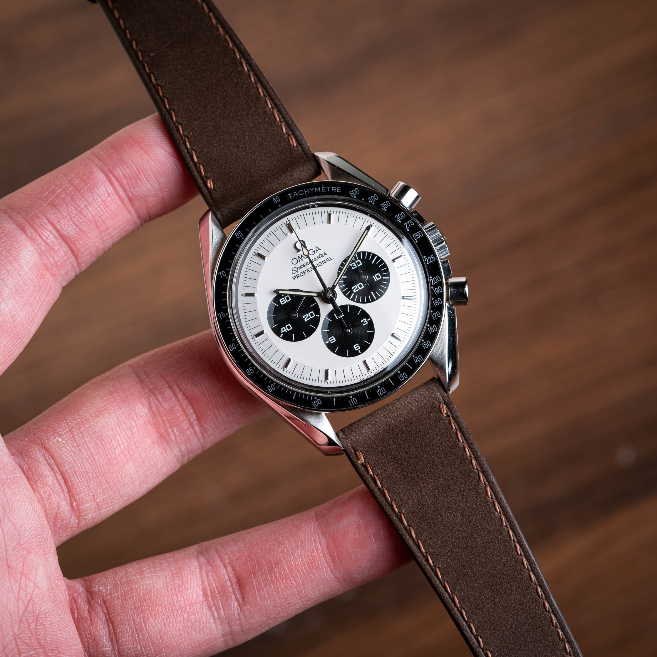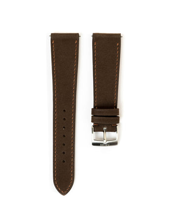 Nubuck has a soft touch with a short and even nap. It is supple and flexible from the start, but yet has just the right amount of structure. This strap is great if you are looking for something that's casual enough for all your daily activities, soft and comfortable to the touch, and an alternative to regular leather texture.