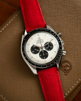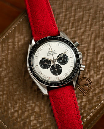 Alcantara material from Italy is a cutting-edge material that offers unparalleled aesthetic, technical and sensory qualities. While it is most similar to suede and microfiber, it would be inaccurate to categorise Alcantara as any of those material. It is most commonly used in the interior of luxury cars, but its uses has since expanded to everyday goods like wallets, card holders, phone covers, bags etc. It is extremely soft to the touch, and provides a very luxurious feel when made into a strap.