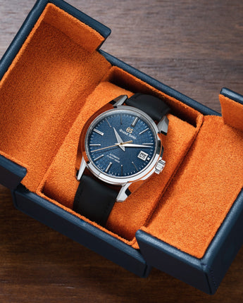 Form and function are both key in our design, which incorporates a satisfying tactile snap mechanism that shuts securely without the use of a magnet or closure strap, ensuring your watch stays safe and protected, but also keeping with a clean exterior aesthetic. It is also paired with a compressible cushion which can be squeezed to accommodate a range of wrist sizes. Surrounding your watch is a soft fabric surface to protect your watch and clasp from scratches.
