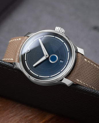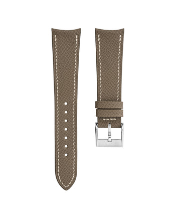 Excerpt from Strap Guide by Tom: "The versatility of an Epsom leather strap is something truly special. It will dress up a sports watch and it will dress down a dress watch. A tightly grained leather that was popularized by it's use in Hermès' Birkin bag. A leather that barely ages and that has good water and scratch resistance. On a Tank, I think it adds an element of leisure. The Taupe color goes with almost anything, but I particularly love it when it's integrated with an outfit like this."