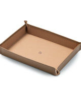 Our valet tray is made with Saffiano leather on the exterior for scratch-resistance, and Alcantara on the inside for a soft, luxurious feel. The middle is padded with sponge material for a plush cushion, while the sides are padded with a stiffener to give structure to the panels.