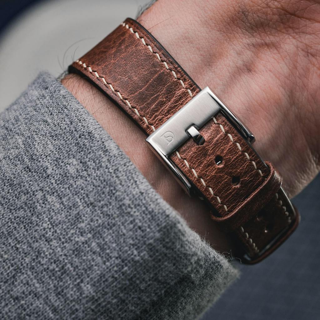 If you're searching for a Delugs strap to use with a vintage watch, be sure to check in with our Customer Service. Vintage watches sometimes use odd widths (17.5mm) or have shallow spring bar plots. This can increase the likelihood of slippage, even with the correct strap installed. Our trained staff will advise on the best course of action for a perfect fit.
